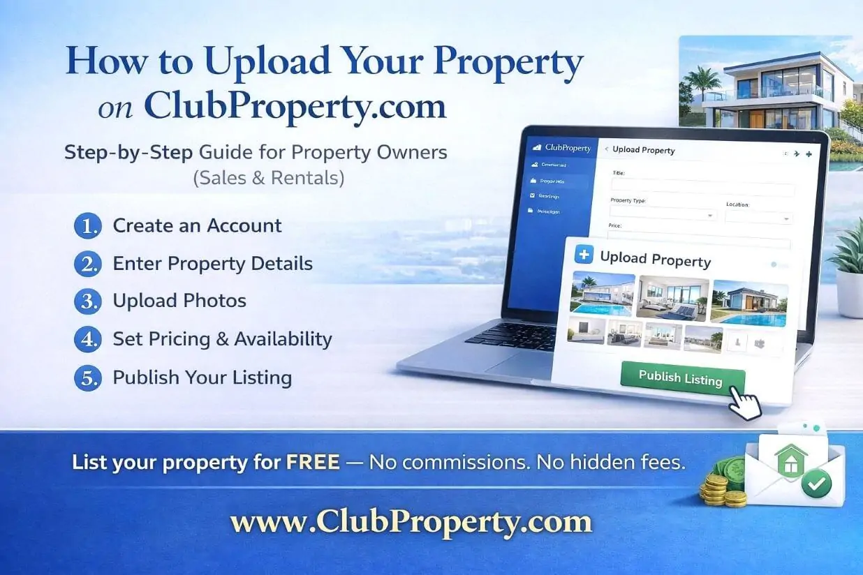 Listing your property online should not be complicated or expensive. With ClubProperty.com, property owners can upload their properties easily and promote them on a platform that is free of charge, with no commissions and no hidden listing fees. If you are a property owner and want to know how to add your listing, this guide walks you through the process step by step.