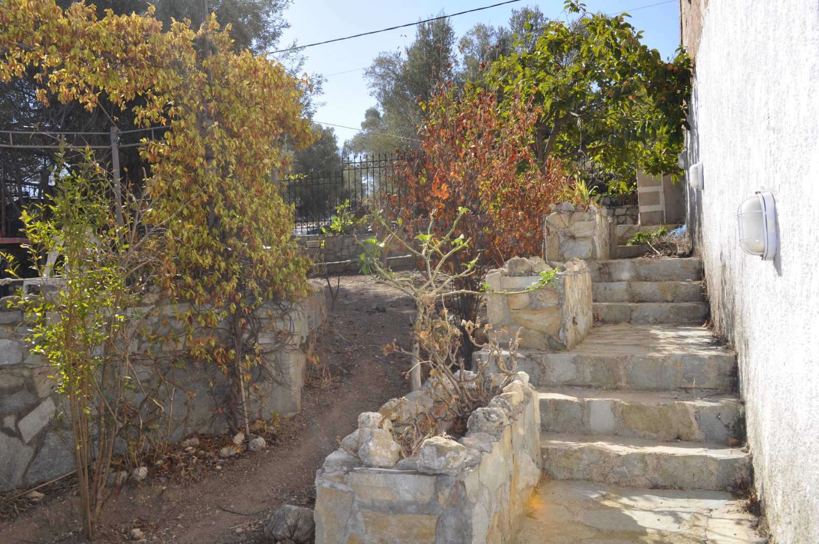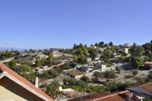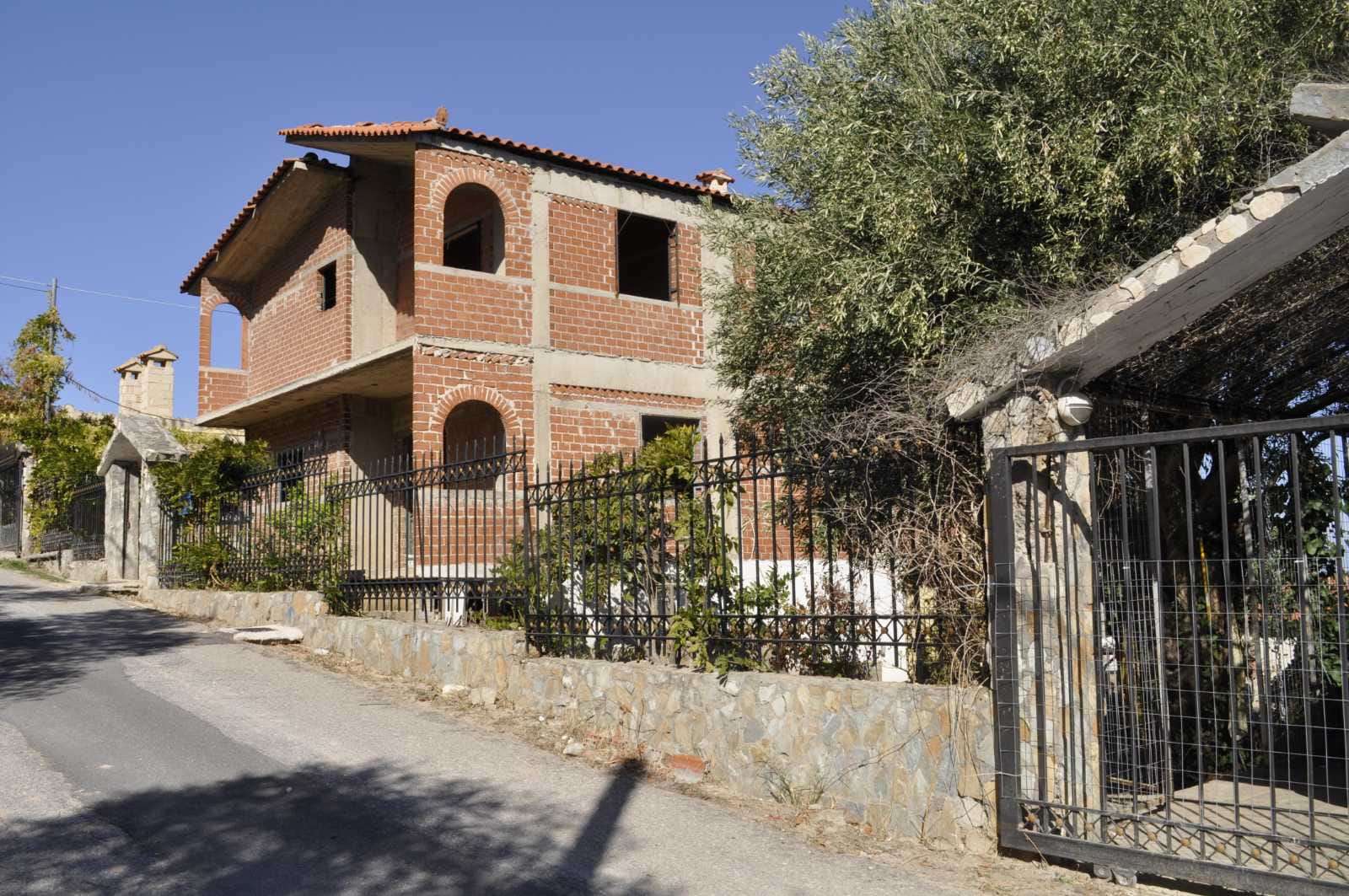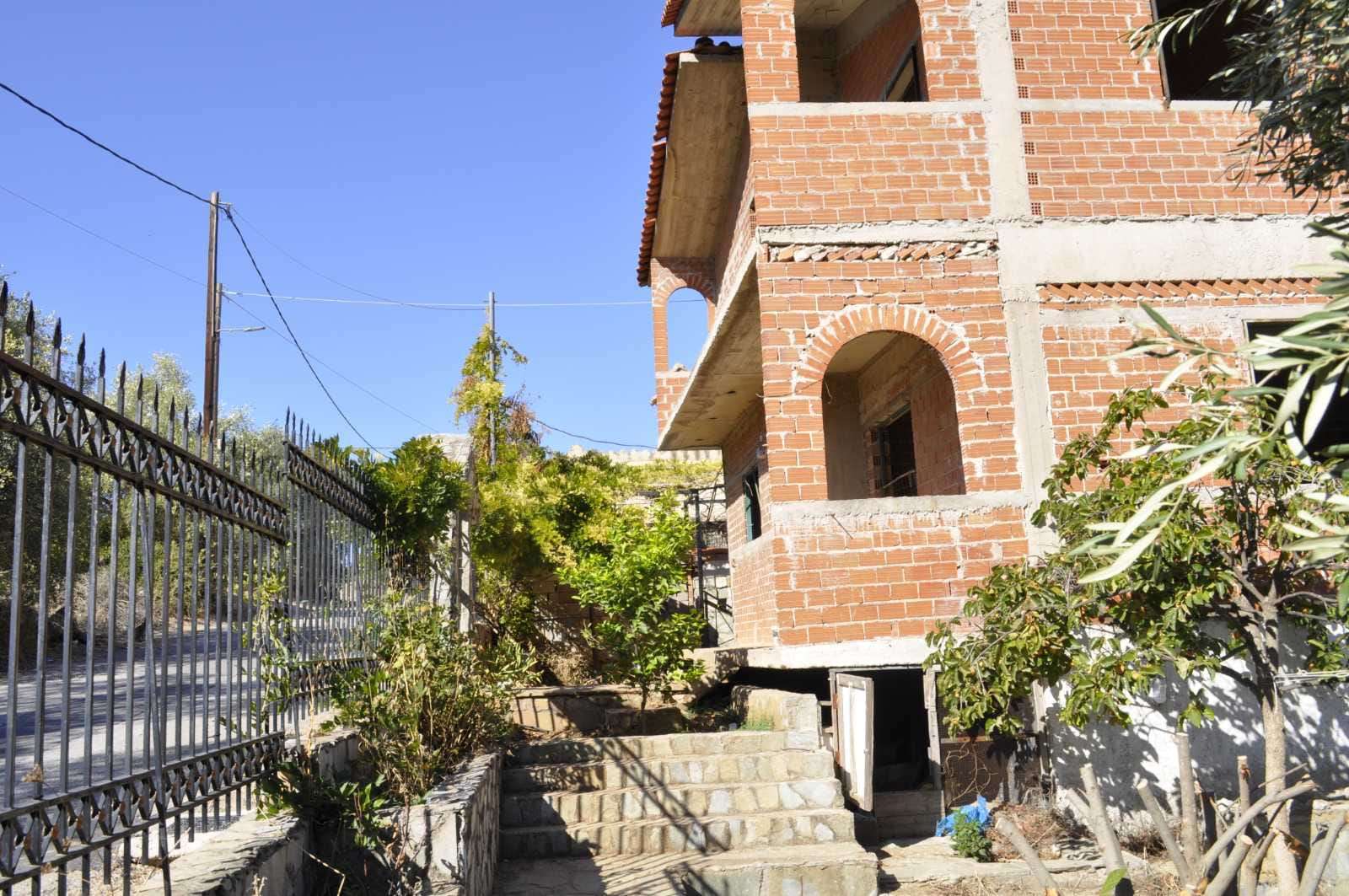 The property for sale is 210sm in total ground floor is finished , 1st and second floor are under construction, so the buyer will have to make an estimation of the cost to finish the 1st and second floor. It has a garden 500sm , it is located 2km from the beach It has both sea view and mountain view, a build BBQ and a fire stone oven outside, a fireplace inside ,boiler for hot water and two open garages