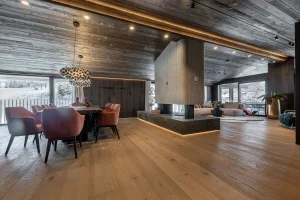 These newly errected chalets are - like connected with an umbilical cord - harmonious beside each other. Each equipped with all advantages and subtleties of latest building technique and noble interiour. One house offers 4.000 squarefeet living space, the sister chalet has 4.250 squarefeet...each 4 sleepings + 4 bathrooms ! In addition, there come terraces, 8 lots in the underground garage, a nice garden and an indoor pool ! Of course we sell the houses one after the other, but since we know - to never seperate siblings - a fine, big family , including "old & young" could enjoy the superb area, all sports and the estate itself !