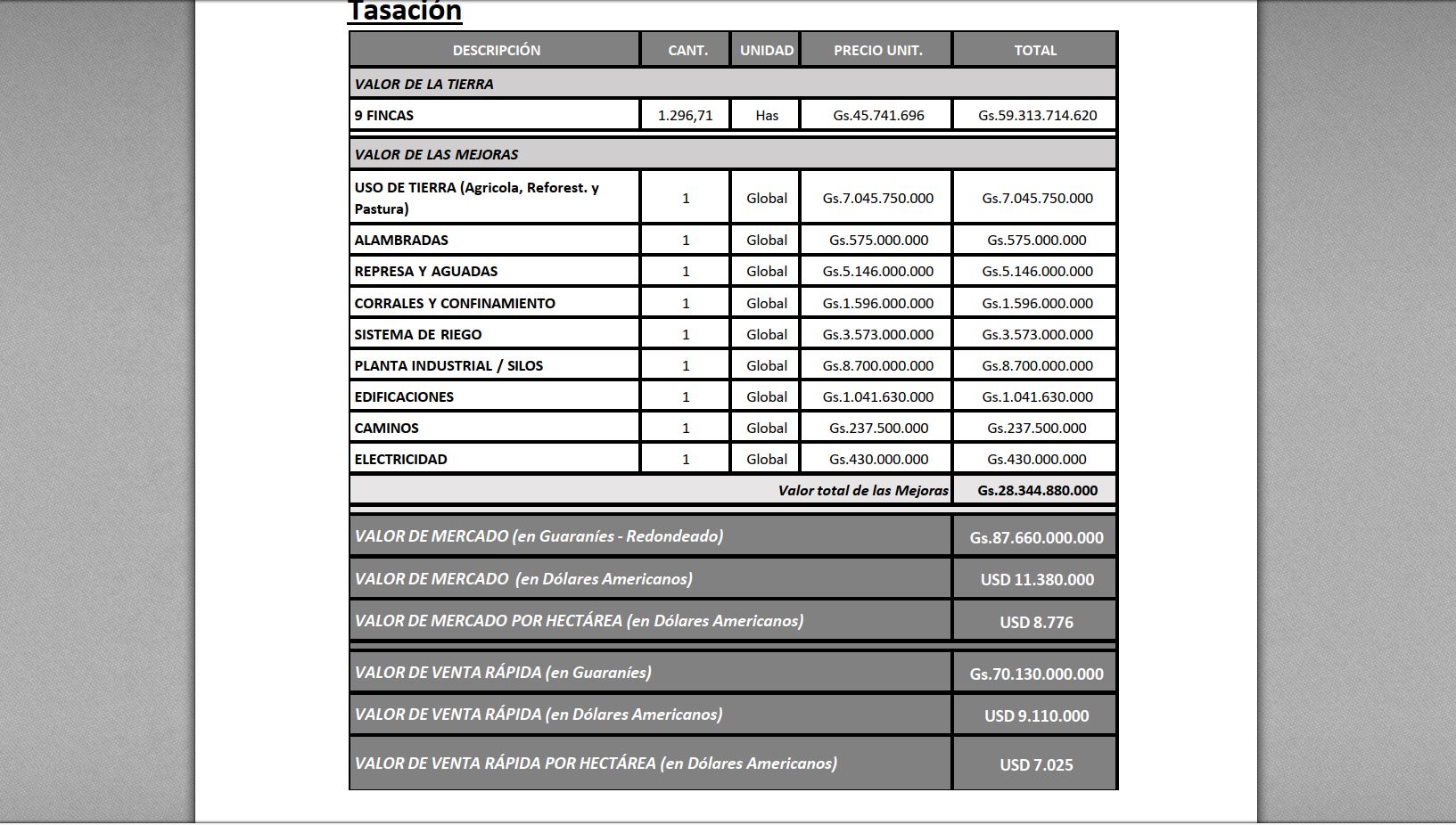 Rural Property Valuation: Total area of ​​the 9 parcels: 1,296 hectares, 7,100 m²