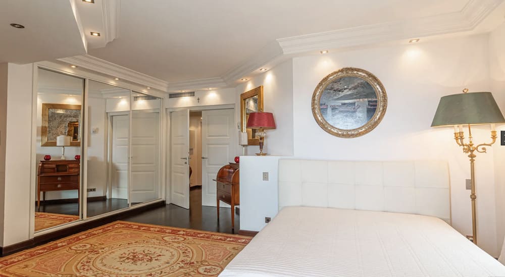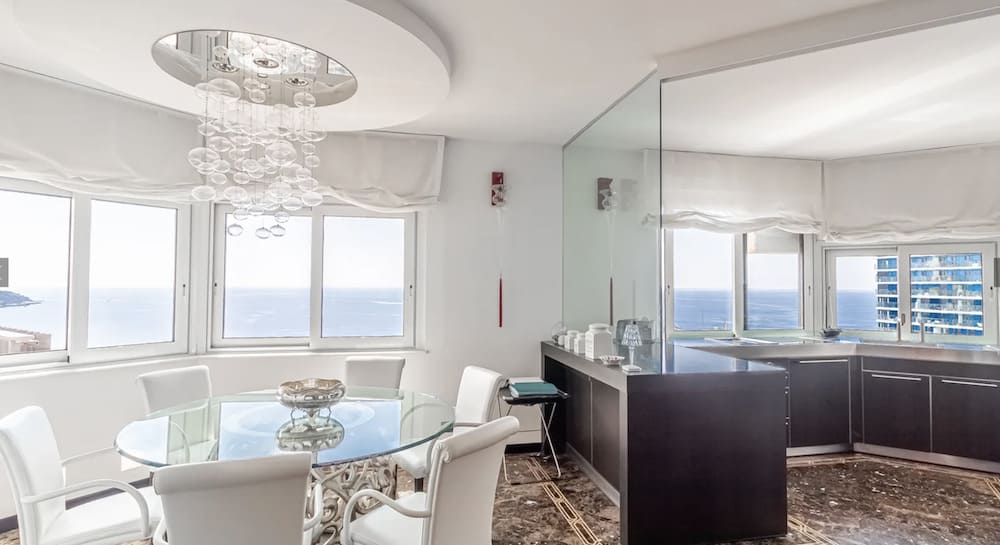 The Parc Saint Roman building is one of the best-known developments in the Principality. It boasts a great location near to the prestigious Monte-Carlo Beach Club, the Country Club tennis courts, the Sporting Casino and restaurants. The building is positioned in a beautiful park and has a large swimming pool, surrounded by palm trees, solarium, snack-bar, sauna and a fitness room. This 277m² apartment comprises a large entrance hall, 3 bedrooms, 1 bathroom, 2 shower rooms, 1 office, a fully equipped open-plan kitchen, a laundry room, and 47m² of terraces. Features of this modern and luxurious apartment include the high floor location with south-eastern and south-western exposure, the Wenge floors, air conditioning, marble floors in the kitchen, a sound system in every room and the one cellar and two parking spaces.