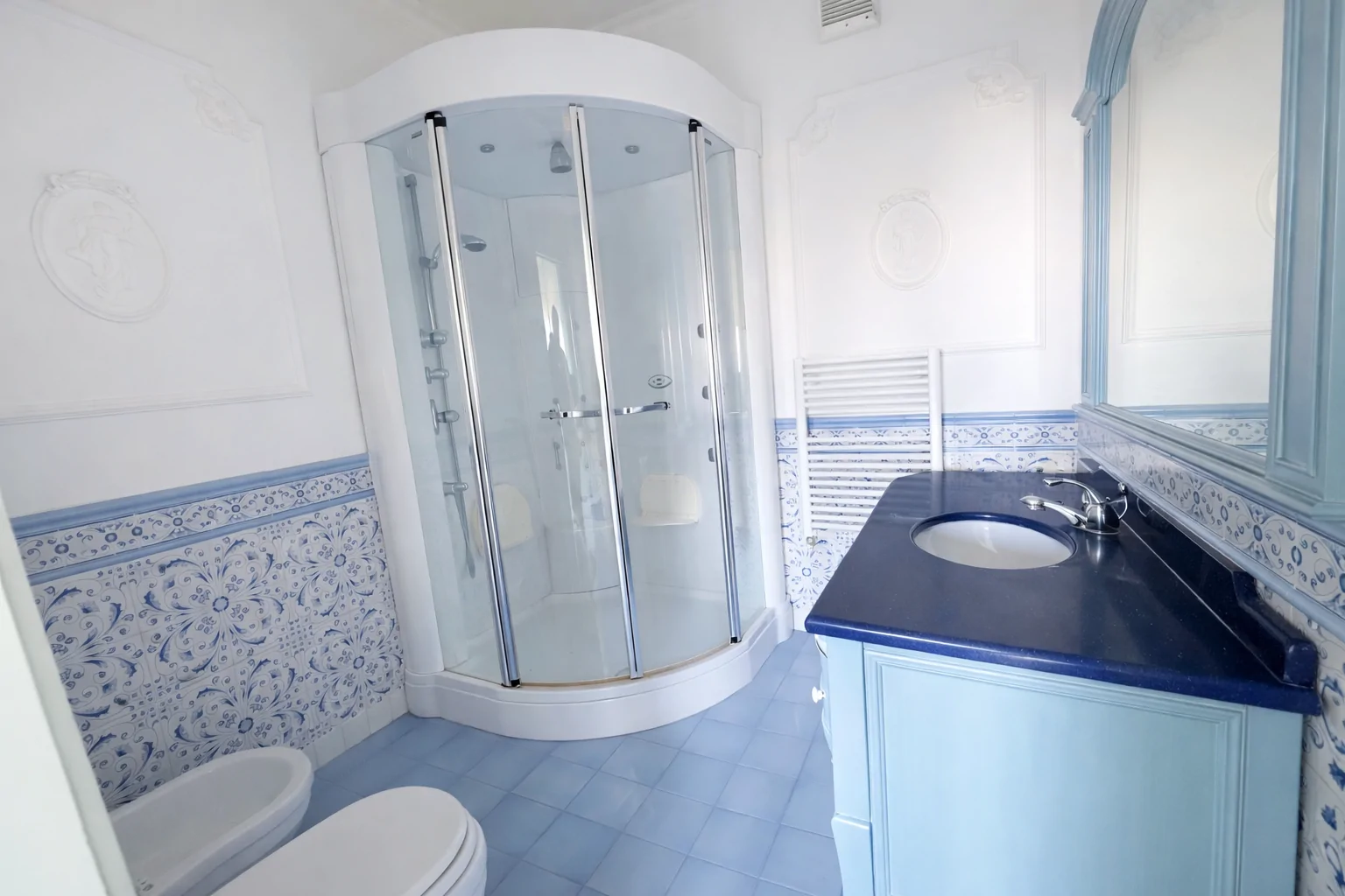 L’intera abitazione è dotata di impianto di climatizzazione a soffitto, soluzione elegante e discreta che garantisce massimo comfort.