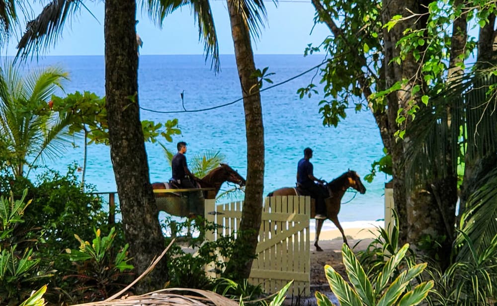 Sheltered from the big waves of mighty Bluff Beach, the retreat center is nestled in its own garden masterpiece, home to howler monkeys, sloths and toucans. Only a lifetime devoted to landscaping and propagating such an array of fruit trees, palms and colorful flowers has produced such a result. Concrete paths light up at night and lead to each of the center’s buildings, virtually invisible to each other, thanks to the lush foliage of the garden.