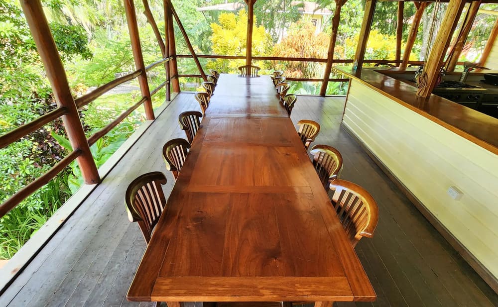 Built between 2006-2017, the Retreat Center has grown organically, and is now comprised of 5 buildings, all connected by lush garden paths. The Beach House is the heart and soul of the property with a 14 seat long table and the resort’s kitchen. The space is versatile and can be rented to a single family, but serves wonderfully as the retreat common space. With the pool in its front garden, it has 2 poolside rooms each with their own bathrooms, and 2 bedrooms and bathrooms upstairs where the kitchen and dining space are located.