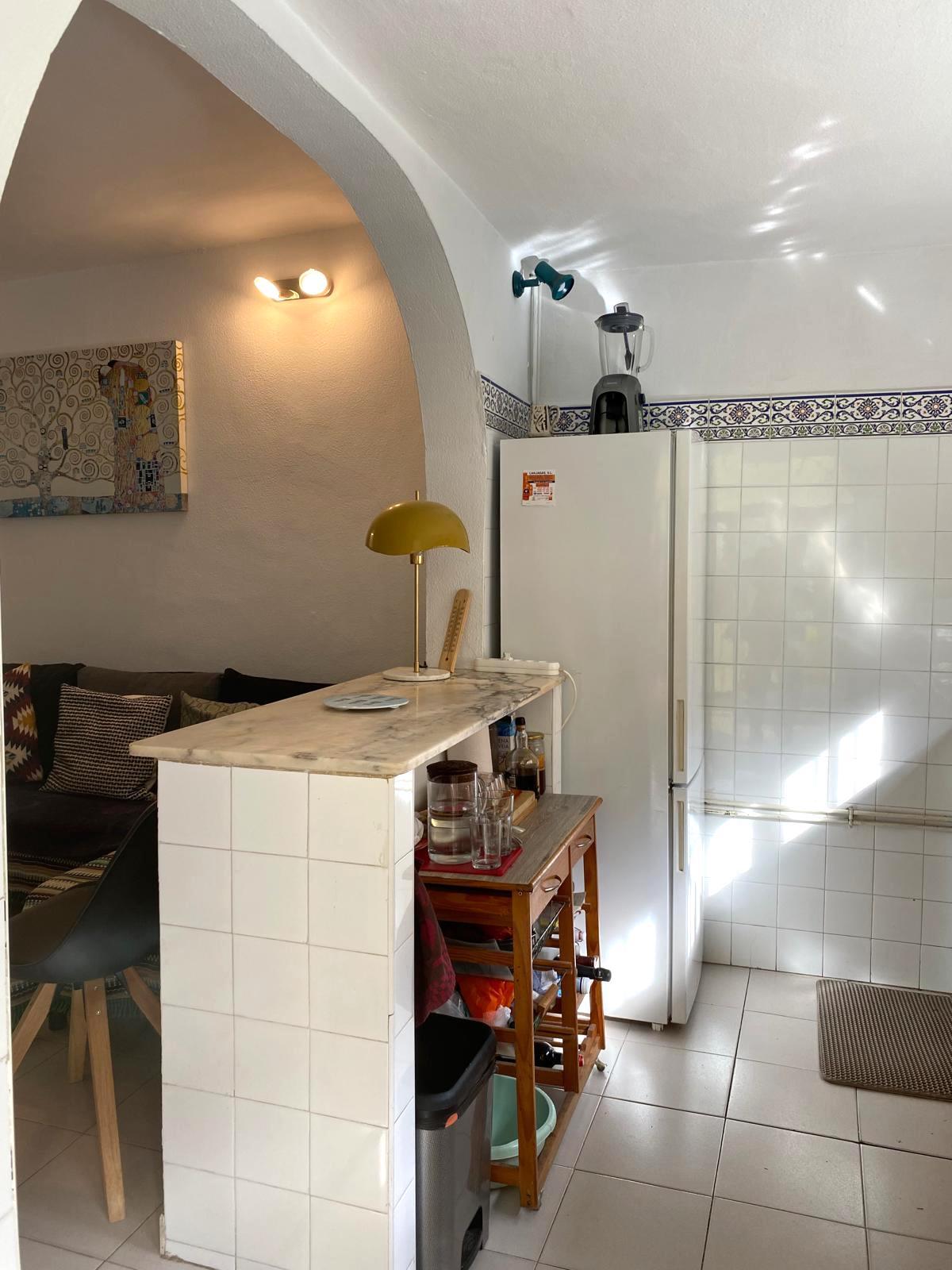 The property offers 72 m² built on a private 164 m² plot, providing privacy and an authentic Mediterranean lifestyle. It features two bedrooms, a bright living area, open-plan kitchen and one bathroom, all on one level.