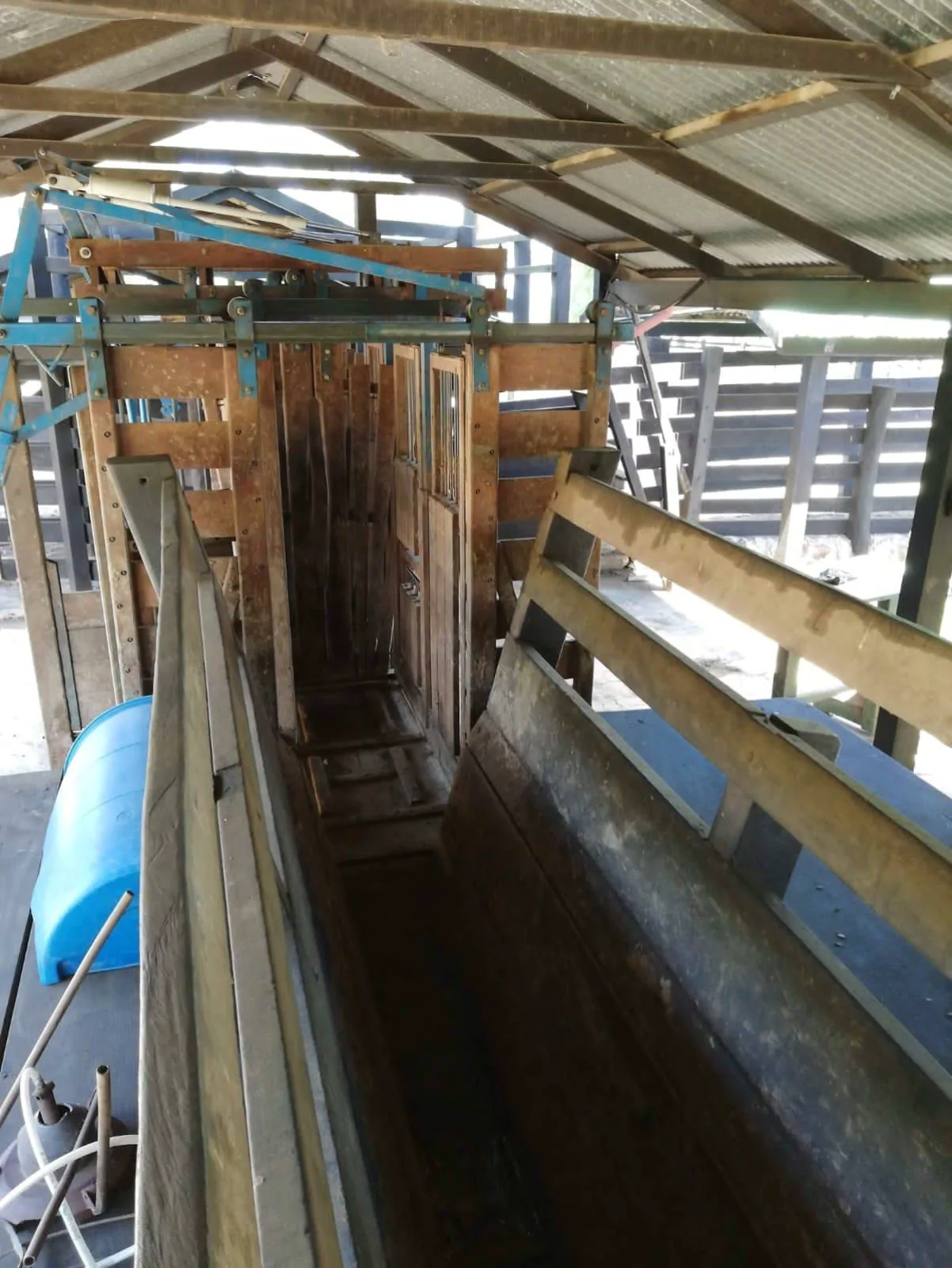 Sawn timber chutes, quebracho posts. Covered chute, headgate, and scales (144 m2). Covered dip bath (90 m2). Materials laboratory (6 m2). Double platform, cement floor. 4 holding pens. Loading ramp. The 2nd, in one of the setbacks, with similar characteristics and dimensions to the one at the Central location,without a materials laboratory. At the entrance there is a small chute with a loading ramp.