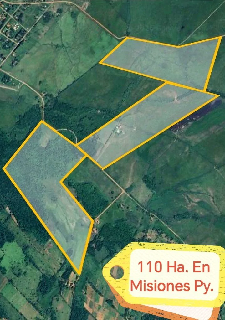 Property, 110 hectares, Santa María, Misiones, Paraguay, located between Cerro Costa and San Fernando, area suitable for agriculture and livestock, brick main house, cattle chute, corrals, good pasture, animal watering trough, stream, poultry coop, artesian well, pigsty, fully fenced, electricity, transformer, staff house, documentation up to date, ready to transfer.