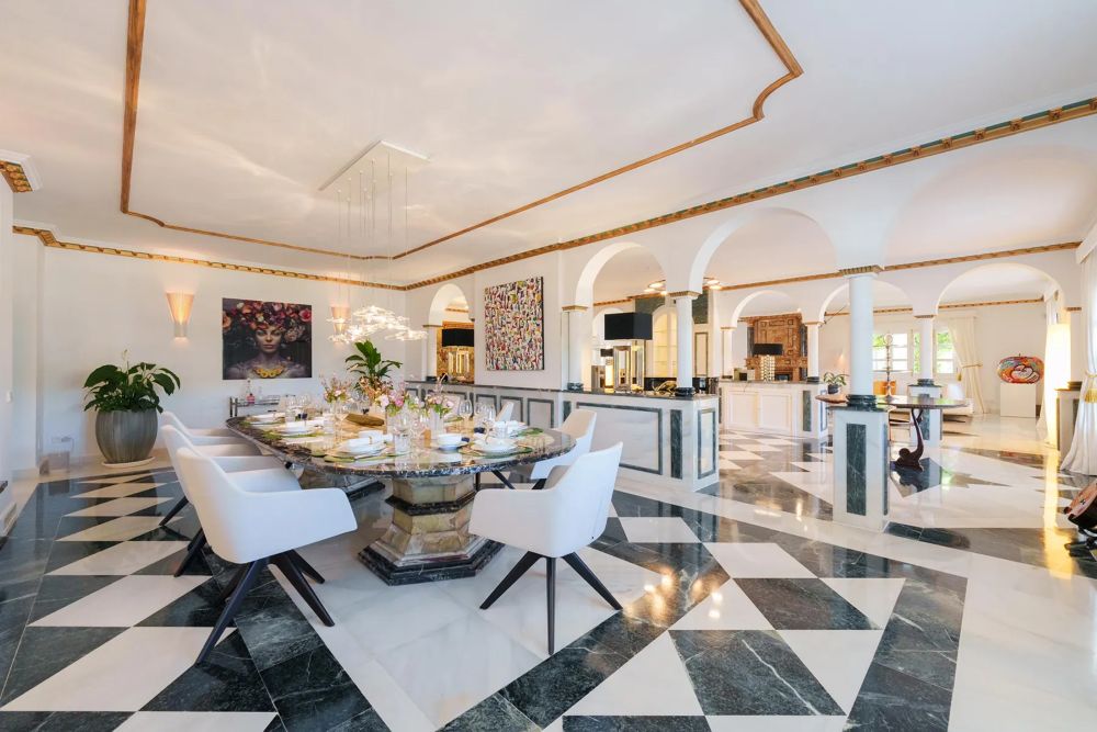 This mansion in Son Vida stands out for its privileged location on the hillside, offering expansive views of the mountains and the golf course, within a plot of approximately 9,000 m² that ensures a high level of privacy. The property is distributed over two floors with over 2,900 m² of built area, including extensive covered terraces of around 600 m². It is designed with numerous ornamental elements such as arches, statues, amphorae, fountains, and waterfalls that enhance the character of the landscaped environment. The main house houses nine bedrooms with en suite bathrooms, while the side building offers five additional bedrooms, also with their own bathroom. Facilities include a spa with steam sauna and jacuzzi, standalone gym, tennis court, and a large pool with counter-current system and sunbathing areas.