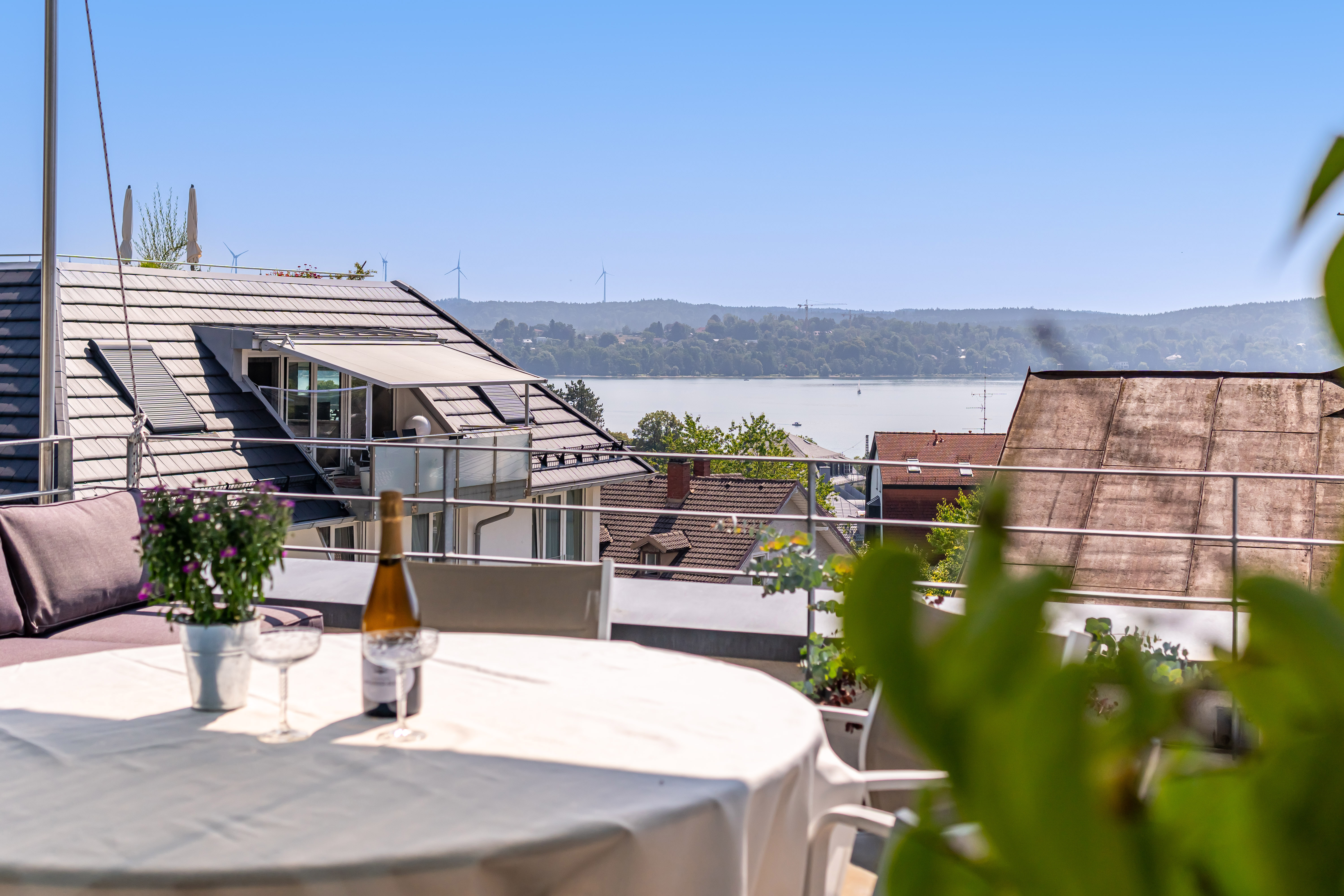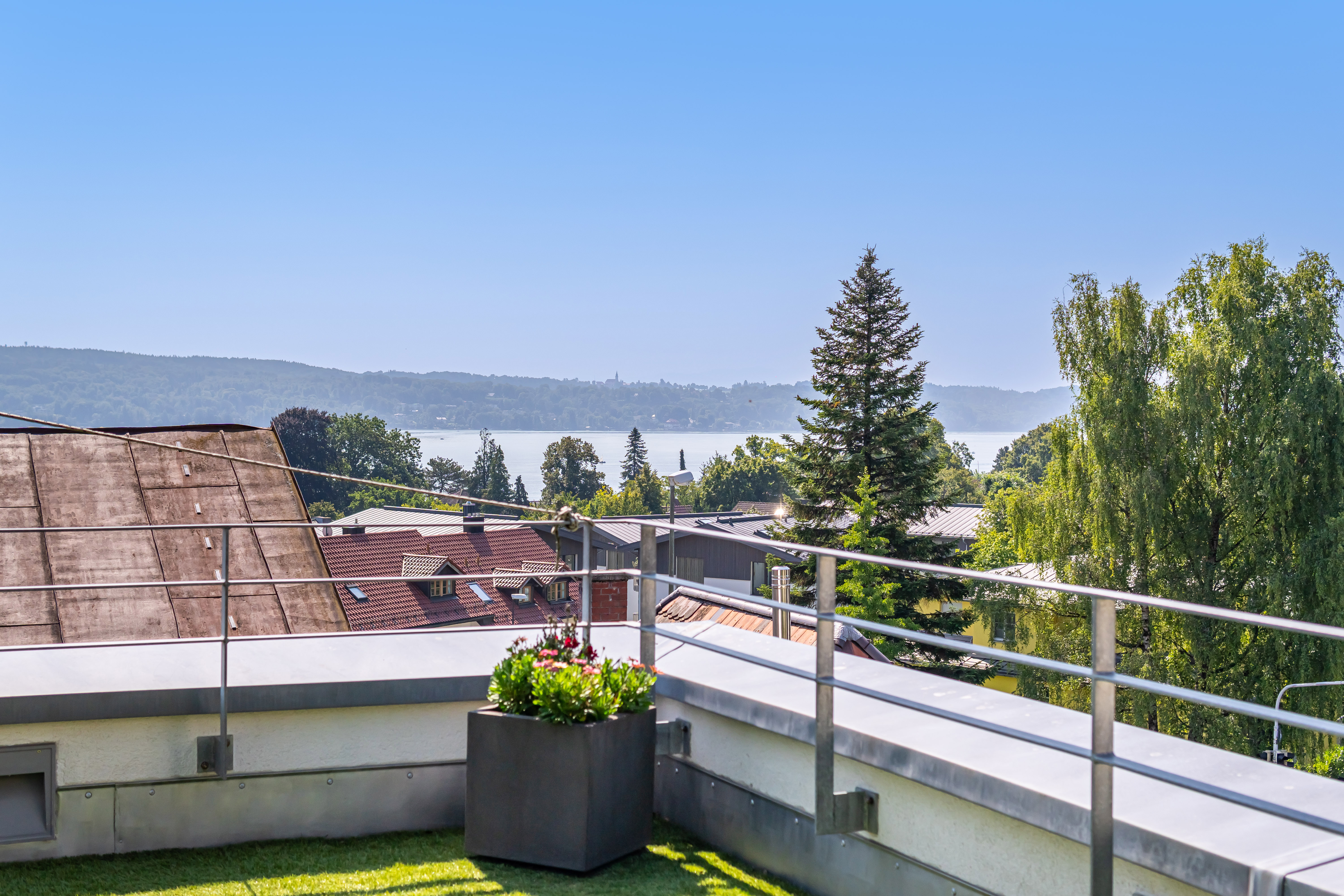 This beautifully designed villa in one of Germany’s most beautiful and sought-after locations impresses not only with its magnificent lake views—whether from the light-filled living area or the unique roof terrace—but also with its high-quality materials and well-thought-out room layout.