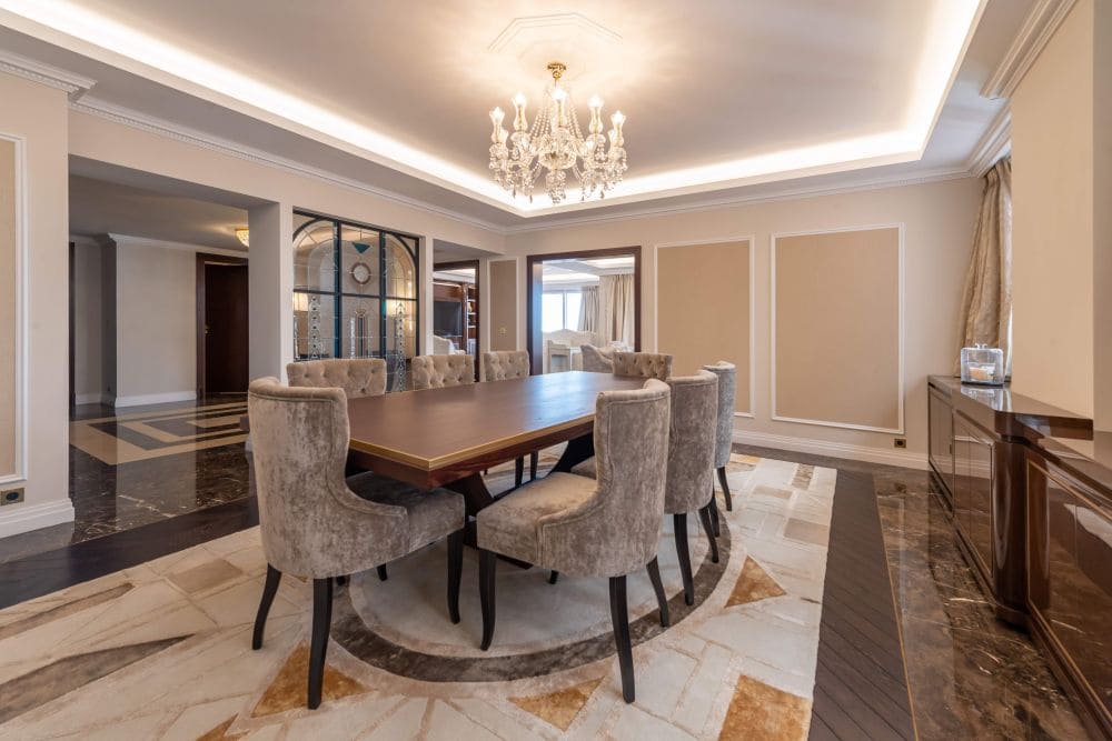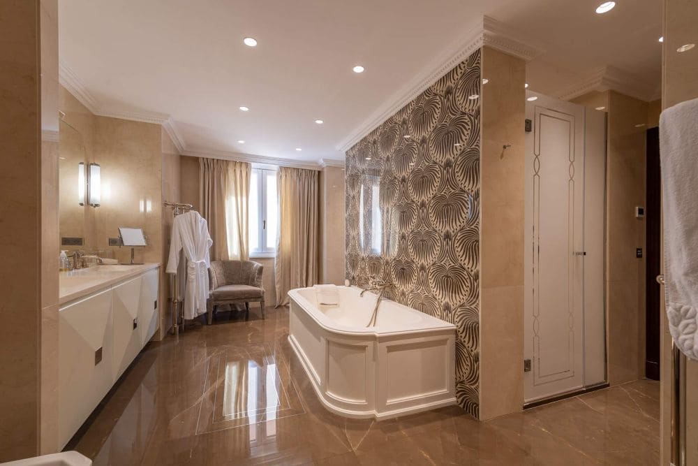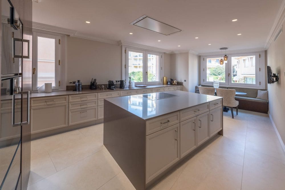 Located on the coveted Boulevard de Suisse, the “Villa de Rome” is a high standing and very exclusive residence with only few flats. Its “Belle Epoque” style architecture, its execution and the quality of the materials used make it one of the most elegant and refined buildings in the Principality. The residence overlooks Sainte-Dévote with a panoramic view of the sea, the Port Hercule, the Grand-Prix and the Rock. Its south-western exposure guarantees excellent light throughout the day. This crossing master flat has been entirely renovated with high quality materials and finishes. It is composed of an entrance hall, a double living room opening onto a large terrace with a view of the sea and the Rock, a spacious dining room and a fully equipped kitchen with top of the range appliances. Three bedrooms with bathroom and dressing room, including a master bedroom with a vestibule, a large dressing room and a bathroom. Two balconies at the rear, a laundry room and a guest toilet complete the flat. The property is sold with 4 parking spaces and 2 cellars, including a real professional wine cellar.
