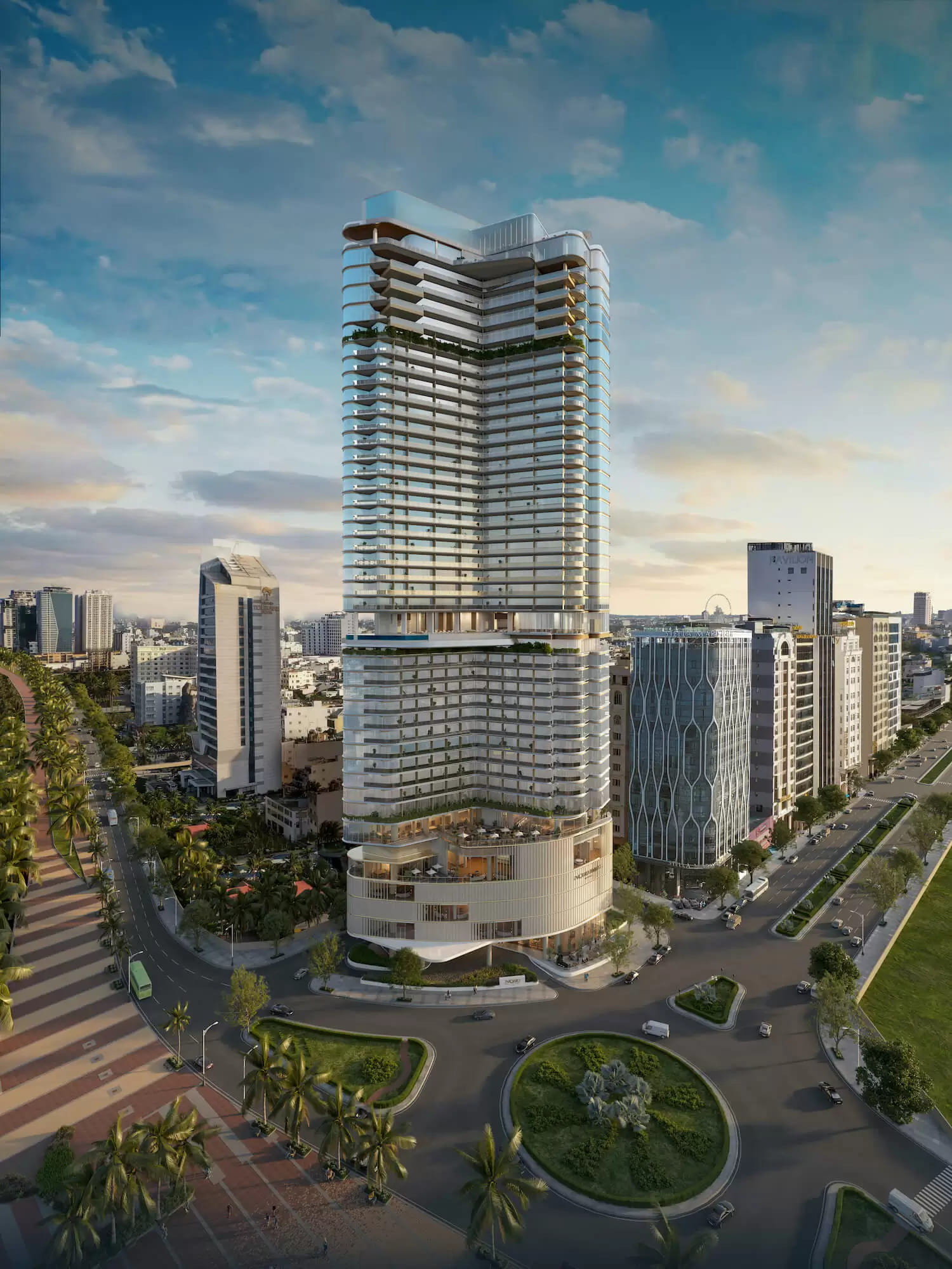 Nestled in a unique historical district of Da Nang, at the famous intersection of Vo Van Kiet and Vo Nguyen Giap Streets, this complex boasts one of the most stunning beaches in the world.The tallest beach complex in Da Nang, its impressive height offers panoramic views of the beautiful natural surroundings and the vibrant coastal city with its numerous amenities.