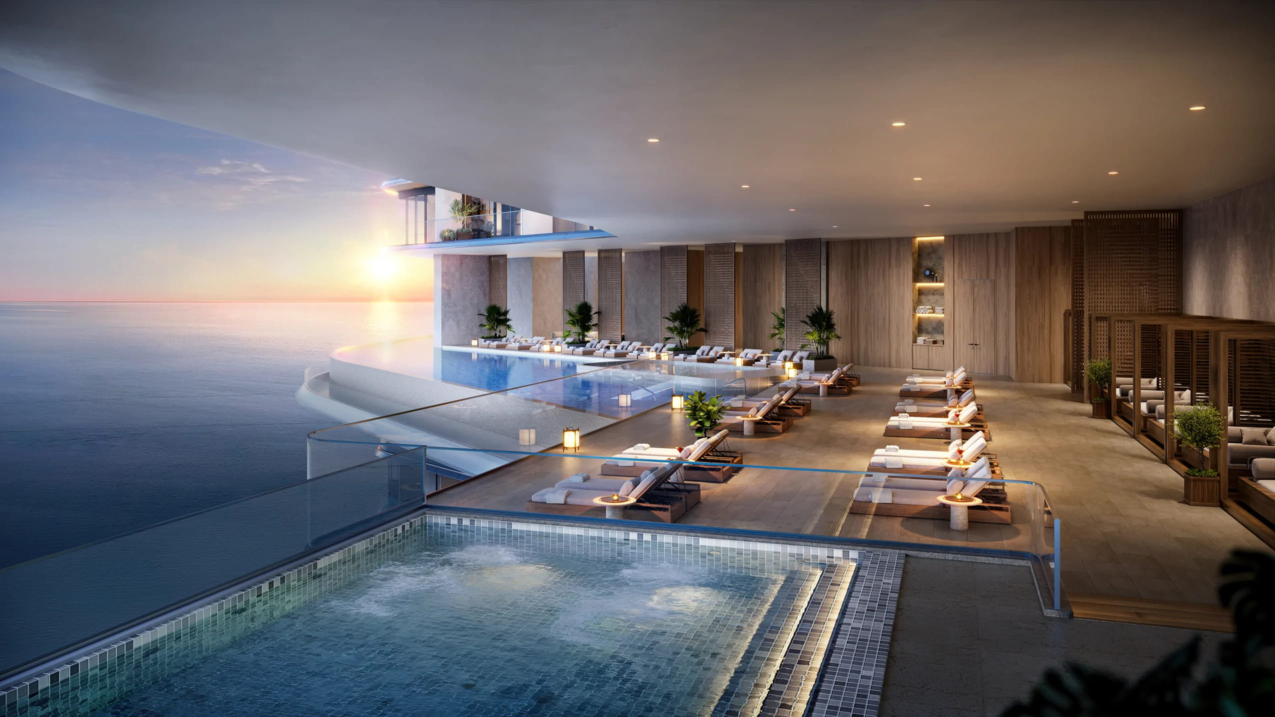 5-star Nobu restaurant on the 42nd floor and a rooftop bar overlooking the sea.