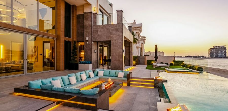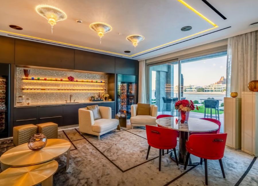 18,422.97 sq. ft. and on a 15,895.39 sq. ft. plot, the six-bedroom residence enjoys spectacular views of Atlantis, The Palm, Atlantis The Royal, the Burj Khalifa and the Burj Al Arab.