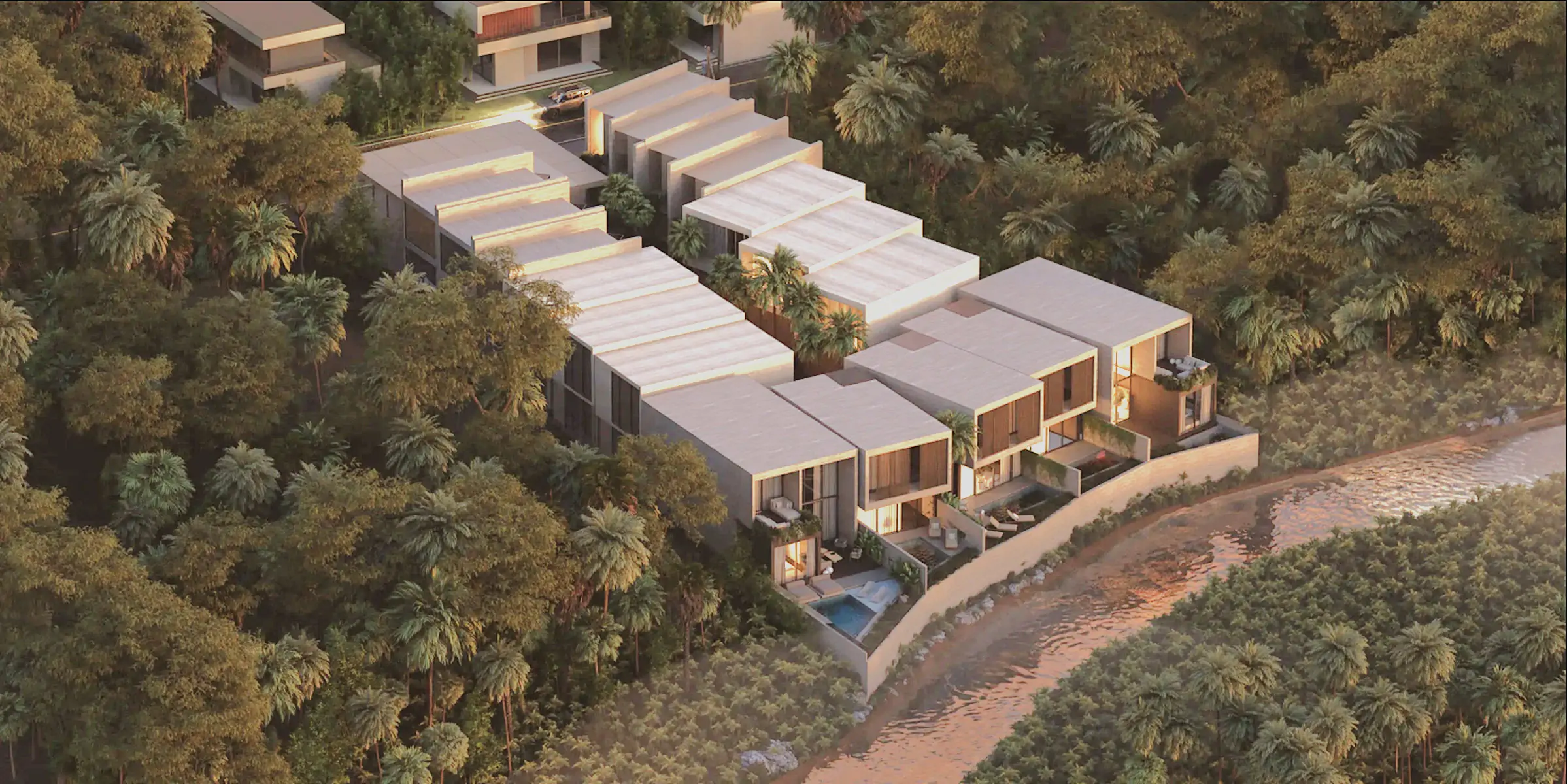 Privé Pererenan is a collection of eighteen modern villas set beside a peaceful river, designed with clean architectural lines, natural materials, and private courtyard spaces that create comfortable homes suited to tropical living. The development also features an onsite café, adding an extra layer of convenience and lifestyle appeal for residents and guests.