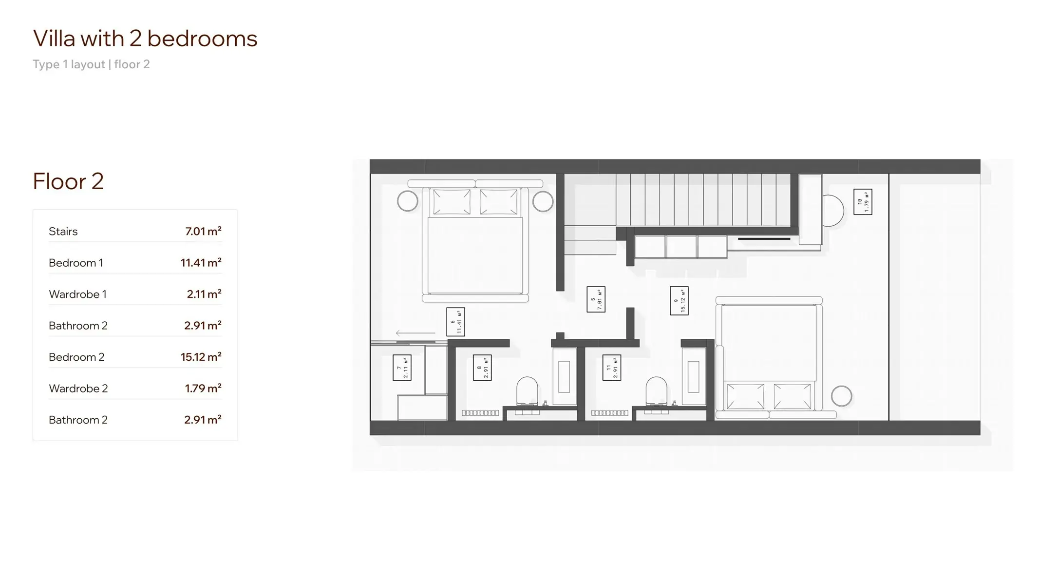 • Bedroom: 2