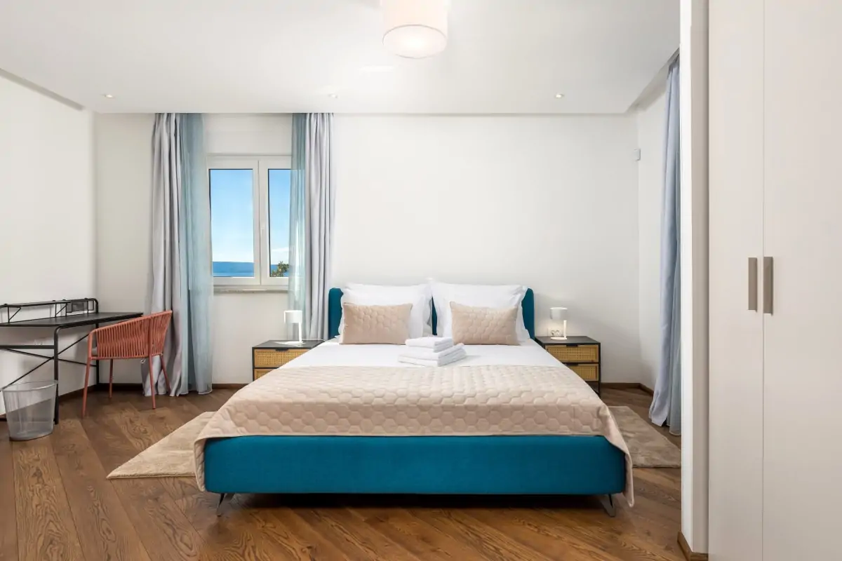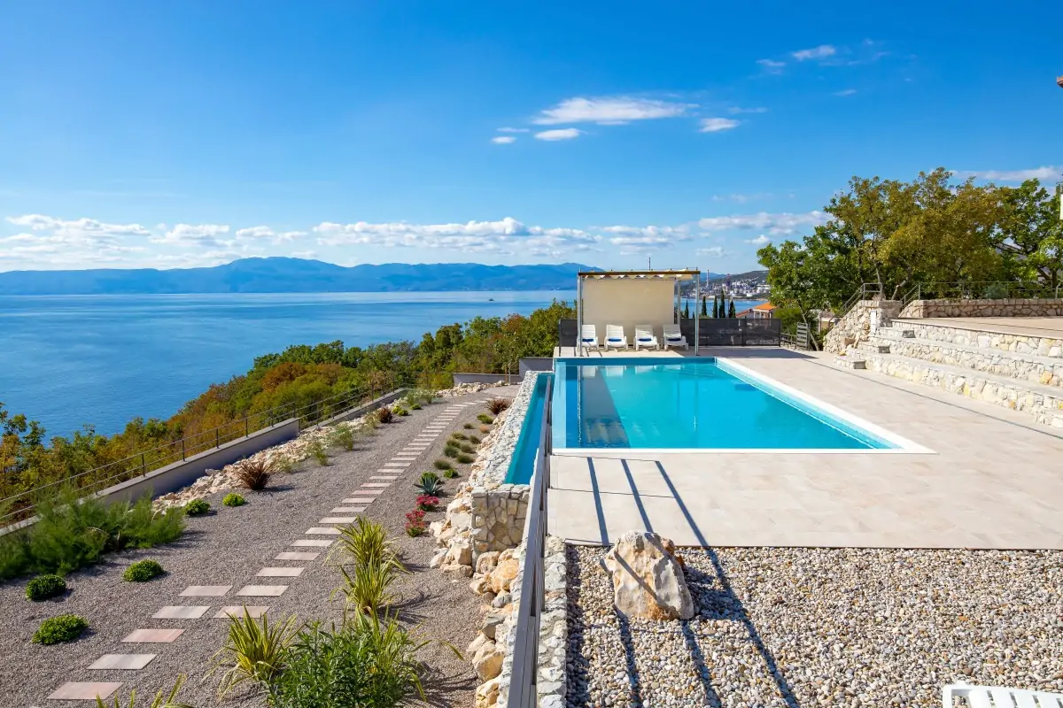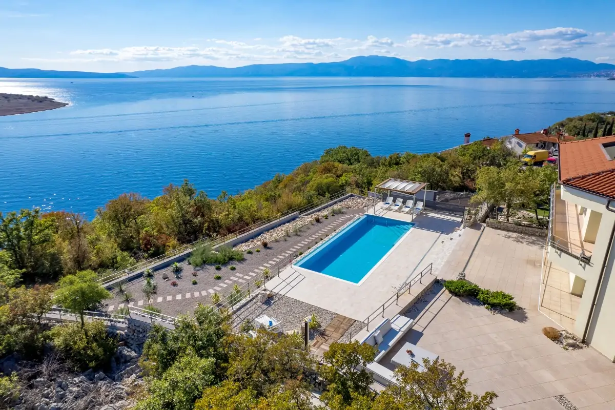 🌊 Located through a 80 m wide green zone from the sea – unobstructed view of the Kvarner Bay, Krk Island and the famous bridge