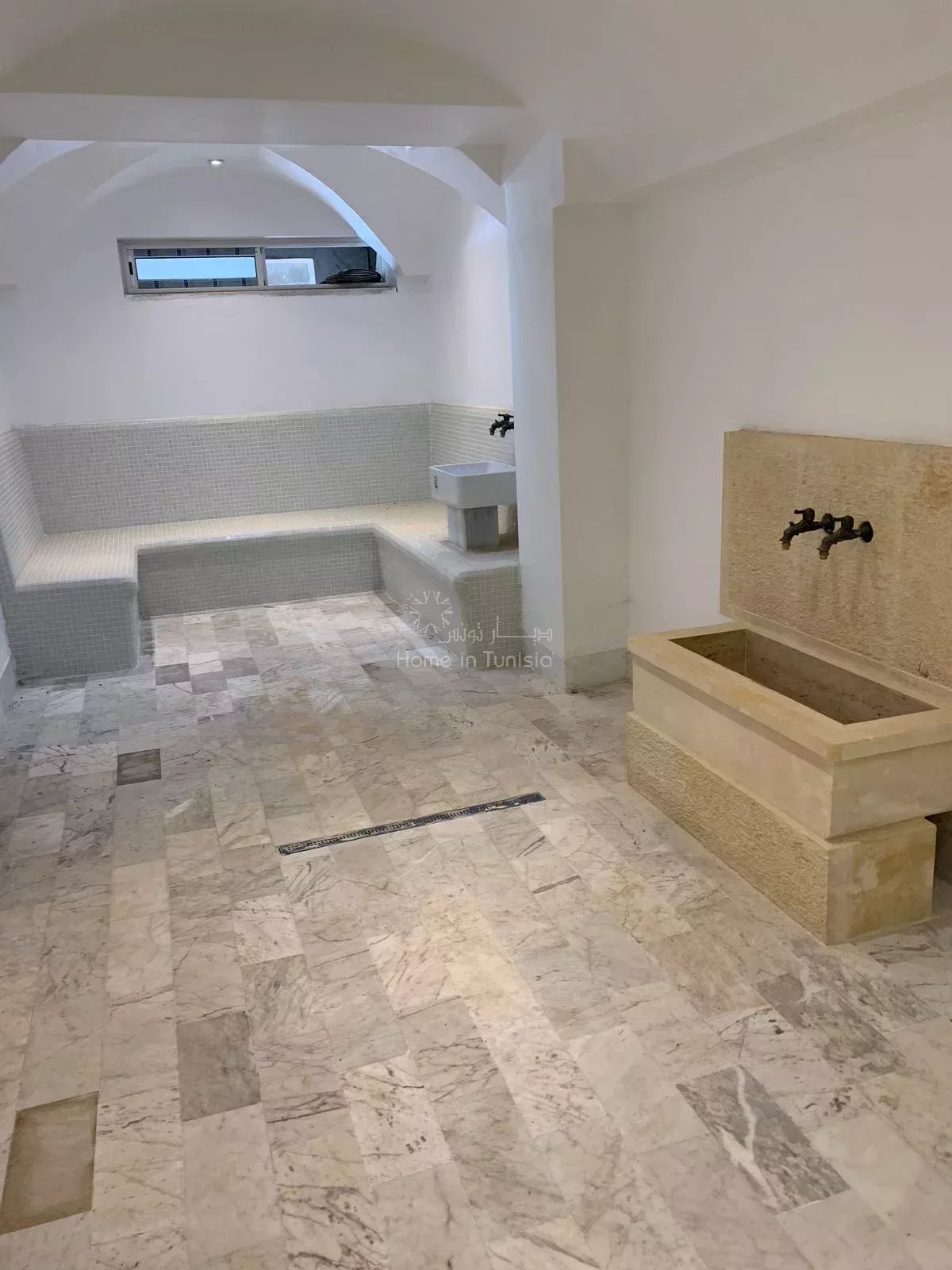 Rez-de-jardin : restaurant intimiste, hammam traditionnel, plusieurs points d’eau.