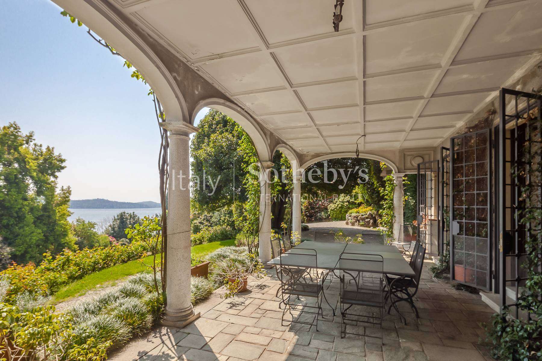 Villa dating from the first years of 1900, surrounded by a beautiful park full of camellias, azaleas and flowering plants, characterized by privacy, comfort and relaxation. The property is located on the hills above the city of Verbania-Intra, facing South West with a wonderful view of Lake Maggiore. The Park, with its walkways made of small pebbles, lets you admire the beauty of the roses climbing up on the terrace of the façade of the Villa and of the amphorae and the camellias along the path towards the pool and the relaxation area. It consists of an outdoor kitchen with dining area and services, and overhanging solarium to enjoy the garden in all its breadth and the view of the Lake in the summer. In the garden there is also an outbuilding that has been converted into a loft reminding to a farmstead with chimney and services, and a second guest house with two apartments that can host a keeper year-round, the garage and the convenient area to access the property from the main road. The architectural details, perfectly maintained, internally and externally, show the work of restoration of the building: they maintain continuity with the recently restored and recovered areas of the House. From the colours to the chosen materials, that recall and repeat themselves in the rooms, bathrooms and bedrooms, fireplaces, wood floors and marble in the bathrooms, they all give the villa its most important feature: keeping the idea of a historic villa on the Lake Maggiore. The entrance leads to the light and spacious living rooms with access to the flowering terrace, dining room with kitchen, studio and double stairwell, one for the staff and the other one for reaching the upper floor, where there is the sleeping area, with two master bedrooms, each with walk-in closet and private bathroom and other two double bedrooms with bathroom. On the attic floor there is a second sleeping area with three bedrooms and a bathroom, service area with laundry, and a large terrace with a beautiful view of the Lake. The lower floor of the Villa, with direct access to the garden and porch, consists of a large kitchen with pantry and dining room, billiard room, studio and Spa wellness area.