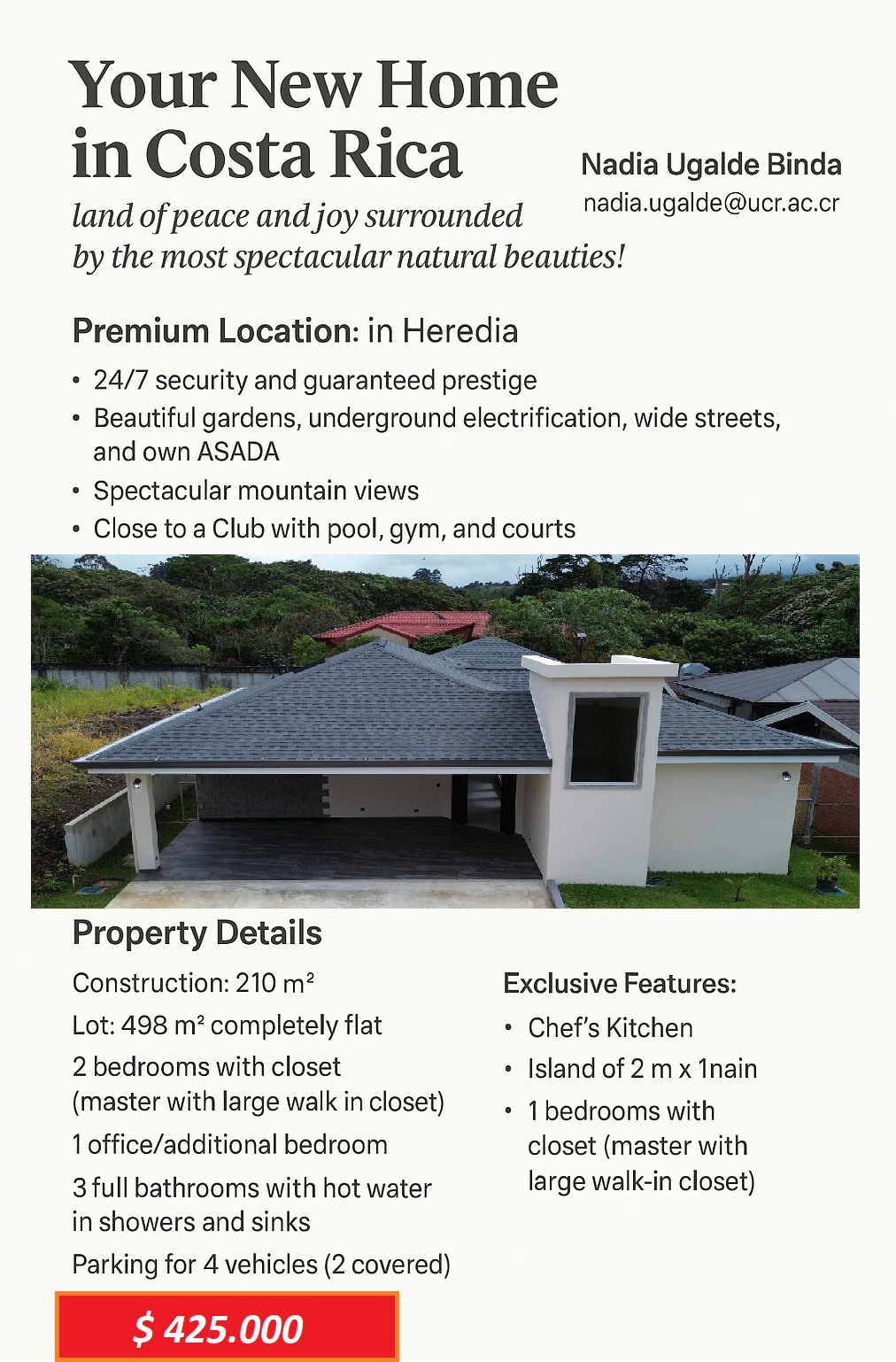 If this sounds like the lifestyle you’ve been dreaming of, a peaceful retirement surrounded by nature, with easy access to beaches, mountains, and a welcoming community, this could be your new home. For more information or to schedule a visit, please contact Nadia Ugalde Binda